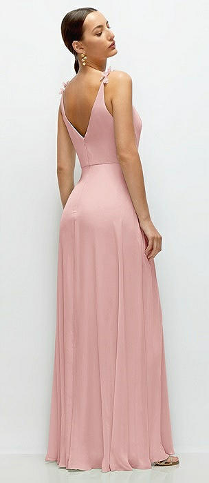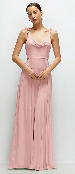Cowl Neck Chiffon Maxi Dress with Hand-Worked Petal Straps in rose
