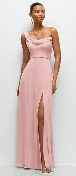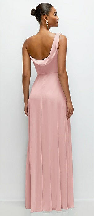 Chiffon One-Shoulder Maxi Dress with Draped Cowl Neckline in rose