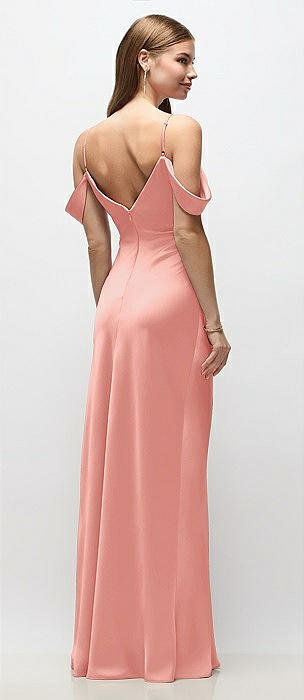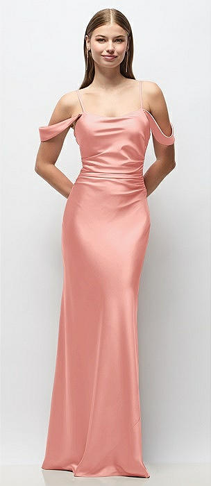 Off-the-Shoulder Swag Ruched Side Satin Bias Maxi Dress with Adjustable Spaghetti Straps in rose