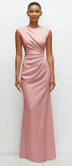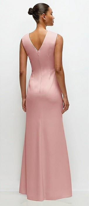 Sleeveless Cap Shoulder Crepe Maxi Dress with Trumpet Skirt in rose