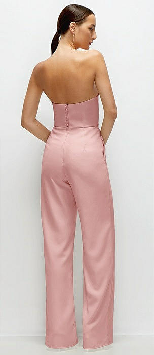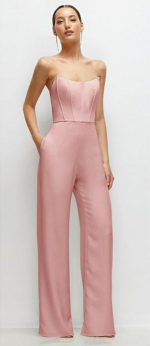 Strapless Cat-Eye Corset Crepe Wedding Jumpsuit in rose