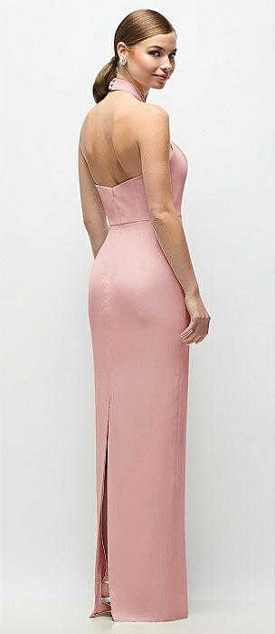 Criss-Cross Halter Open-Back Crepe Column Maxi Dress in rose