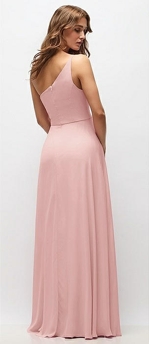 One-Shoulder Chiffon Maxi Dress with Shirred Front Slit in rose