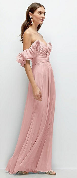 Off-the-Shoulder Basque Neck Maxi Dress with Flounce Sleeves in rose