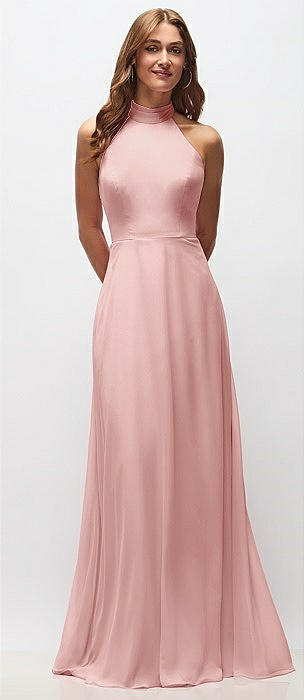 High Neck Halter Backless Maxi Dress in rose