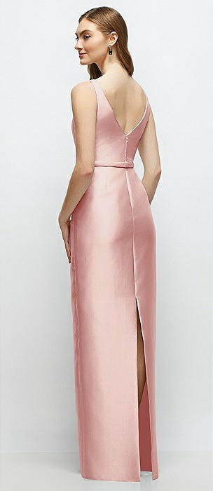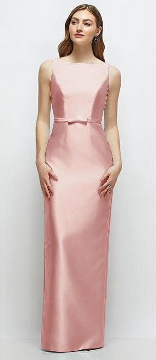 Bateau Neck Satin Column Dress with Bow-Trimmed Skinny Belt in rose