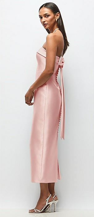 Strapless Cuff Satin Midi Dress with Column Skirt & Back Bow in rose