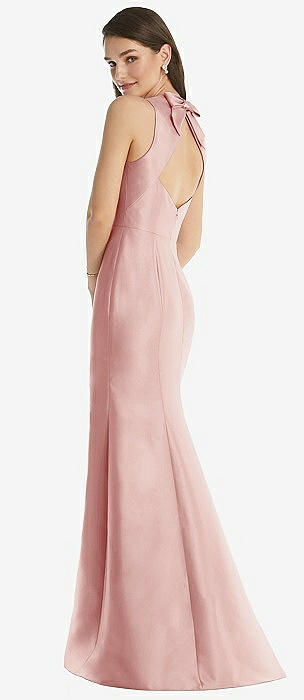 Sleeveless Satin Trumpet Gown with Bow at Open-Back in rose