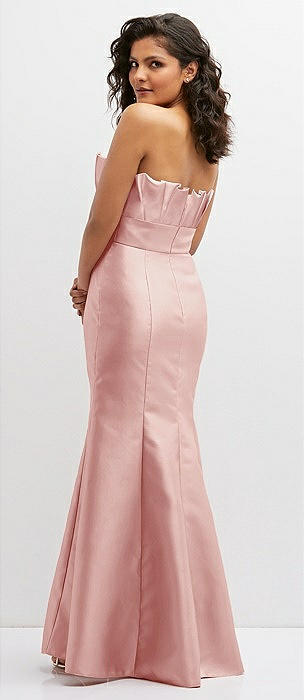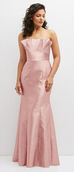 Basque-Neck Strapless Satin Gown with Mini Sash in rose