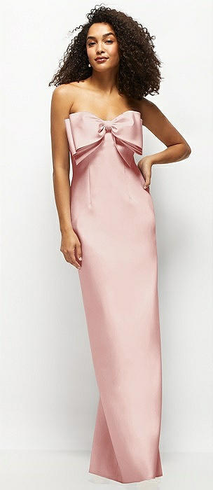 Strapless Satin Column Maxi Dress with Oversized Handcrafted Bow in rose