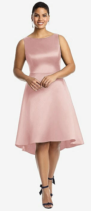 Bateau Neck Satin High Low Cocktail Dress in rose