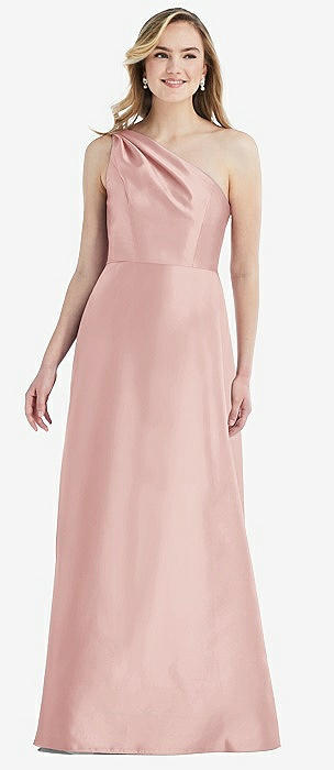 Draped One-Shoulder Satin Trumpet Gown with Front Slit in rose