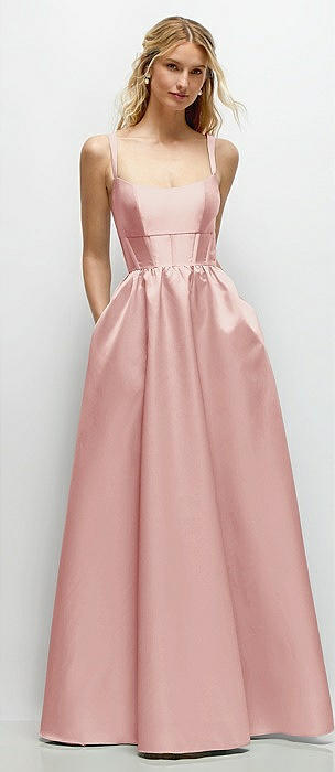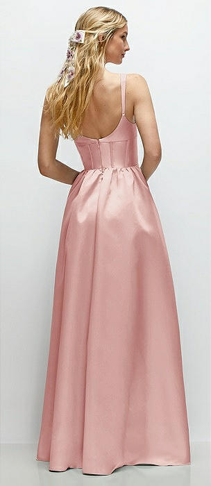 Scoop Neck Drop Basque Skirt Satin Maxi Dress with Pockets in rose
