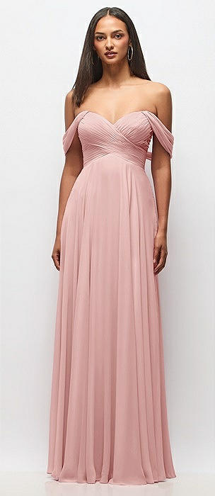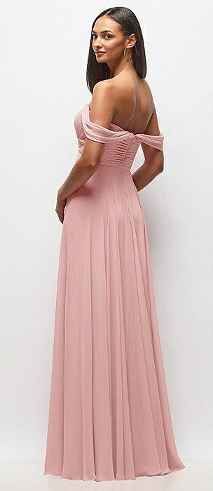Off-the-Shoulder Draped Chiffon Maxi Dress in rose