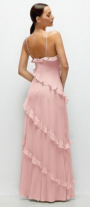 Bustier-Style Chiffon Tiered Ruffle Maxi Dress with Adjustable Straps in rose