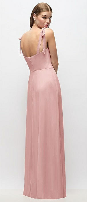Tie-Shoulder Chiffon Maxi Dress with Front Slit in rose