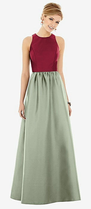 Sleeveless Open-Back Satin A-Line Dress in sage