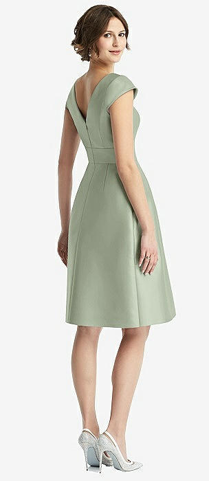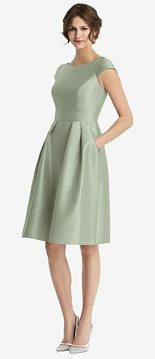Cap Sleeve Pleated Cocktail Dress with Pockets in sage