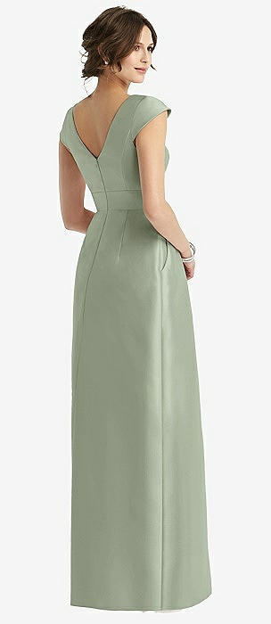V-Neck Full Skirt Satin Maxi Dress in sage