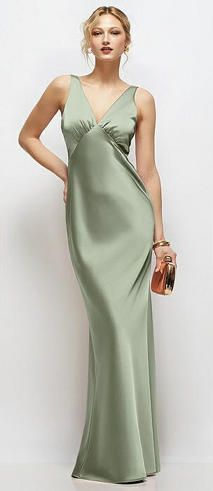 Sleeveless V-Neck Stretch Satin Bias Slip Maxi Dress in sage