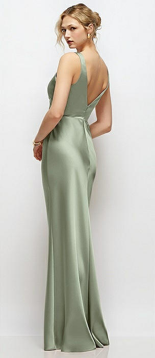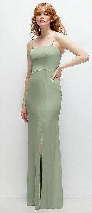 Square-Neck Satin A-line Maxi Dress with Front Slit in sage