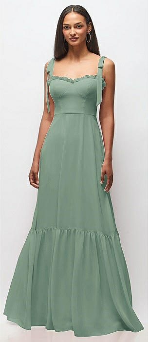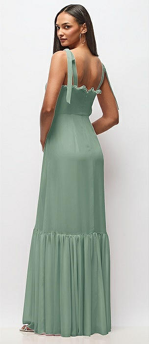 Tie-Shoulder Bustier Bodice Ruffle-Hem Maxi Dress in seagrass