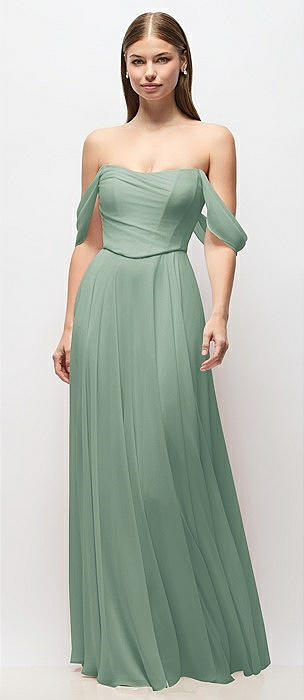 Off-the-Shoulder Basque Corset Chiffon Maxi Dress in seagrass