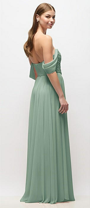 Strapless Pleated Surplice Chiffon Maxi Dress with A-Line Skirt in seagrass
