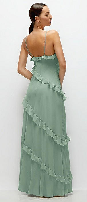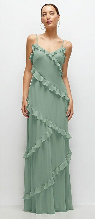 Asymmetrical Ruffle Chiffon Bias Slip Maxi Dress in seagrass