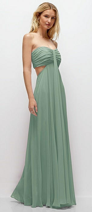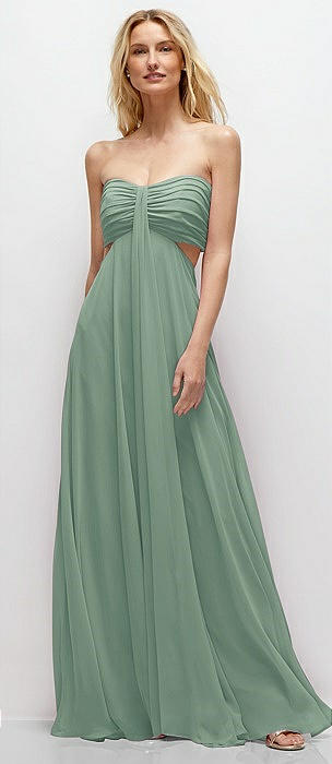 Strapless Empire Waist Cutout Maxi Dress with Covered Button Detail in seagrass
