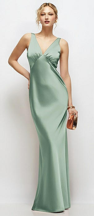Sleeveless V-Neck Stretch Satin Bias Slip Maxi Dress in seagrass