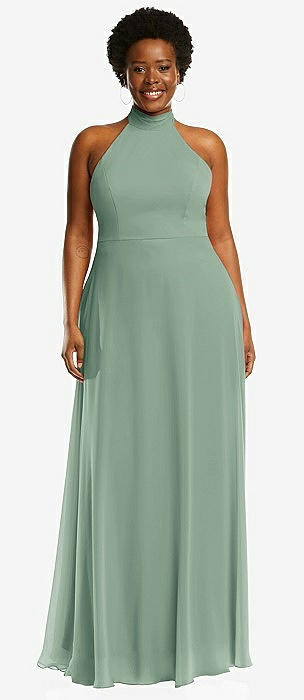 Shirred Halter Chiffon Maxi Dress with Back Sash-Tie Closure in seagrass