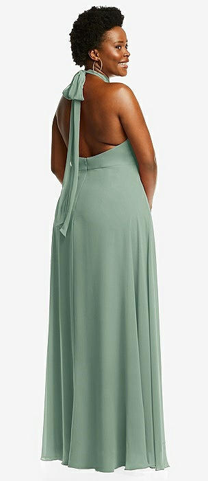 Pleated Halter Bias Satin Maxi Dress with Self-Tie Bow Back in seagrass