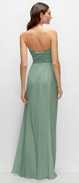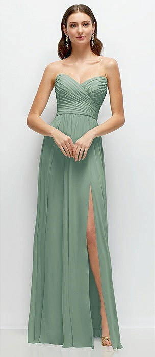 Strapless Pleated Surplice Chiffon Maxi Dress with A-Line Skirt in seagrass