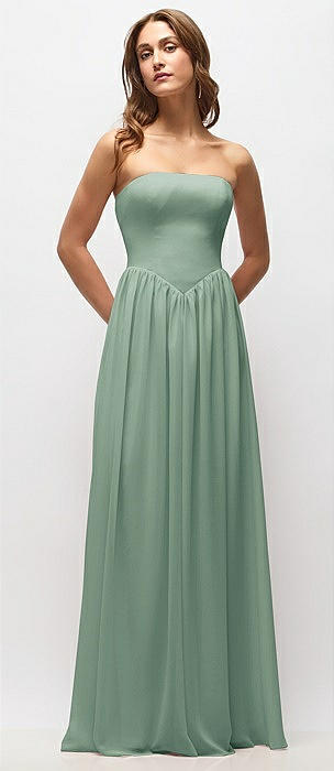 Strapless Basque Drop Waist Chiffon Maxi Dress with Shirred Skirt in seagrass