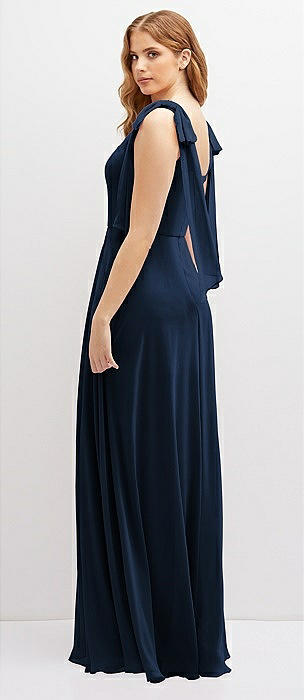 Bow Shoulder Square Neck Chiffon Maxi Dress in midnight navy