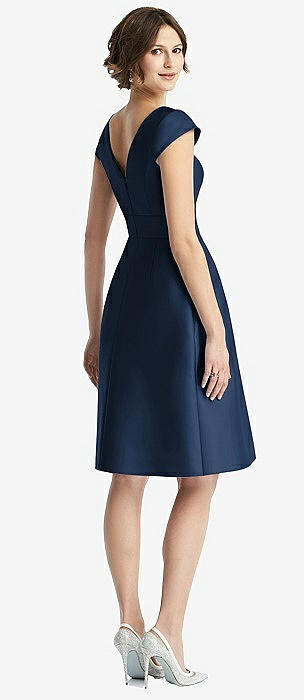 Cap Sleeve Pleated Cocktail Dress with Pockets in midnight navy