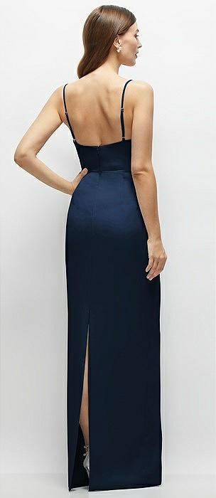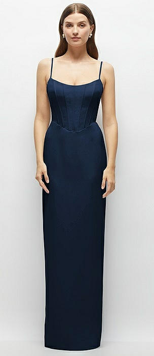Corset-Style Crepe Column Maxi Dress with Adjustable Straps in midnight navy