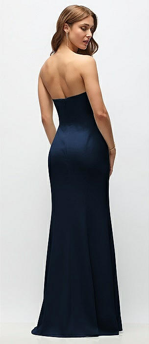 Strapless Scoop Back Maxi Dress with Front Slit in midnight navy