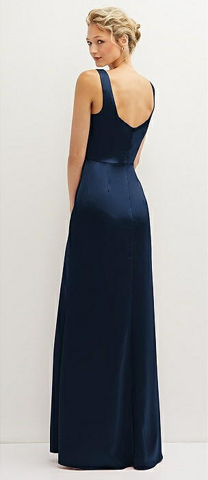 Square-Neck Satin A-line Maxi Dress with Front Slit in midnight navy