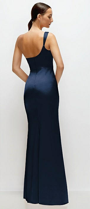 Shirred One-Shoulder Satin Trumpet Dress - Maddie in midnight navy
