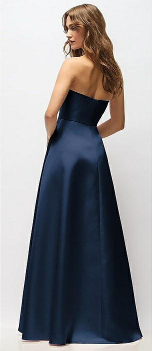 Strapless Cuff Satin Midi Dress with Column Skirt & Back Bow in midnight navy