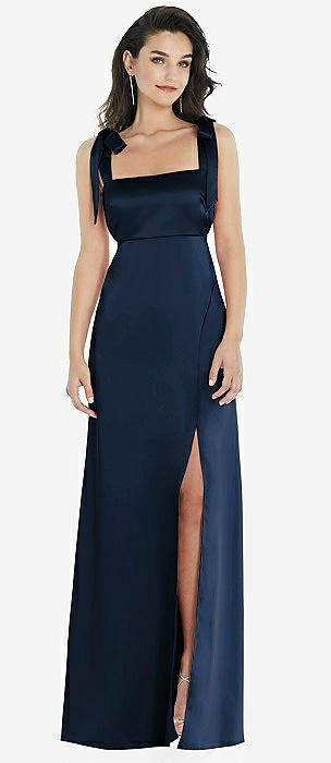Flat Tie-Shoulder Empire Waist Maxi Dress with Front Slit in midnight navy