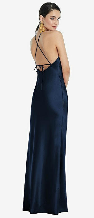 Diamond Halter Bias Maxi Slip Dress with Convertible Straps in midnight navy