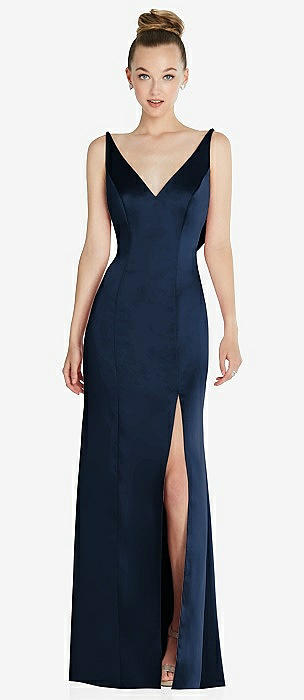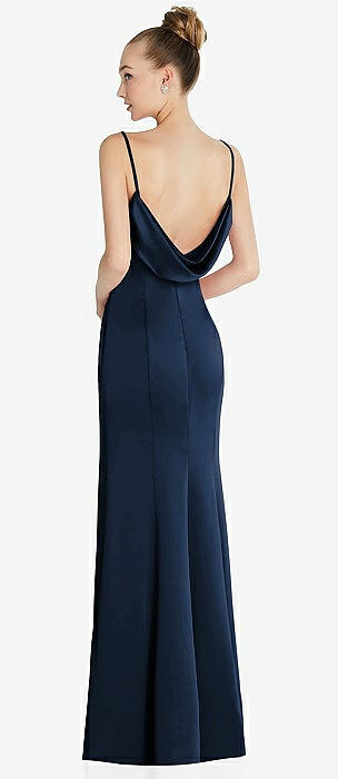 Draped Cowl-Back Princess Line Dress with Front Slit in midnight navy