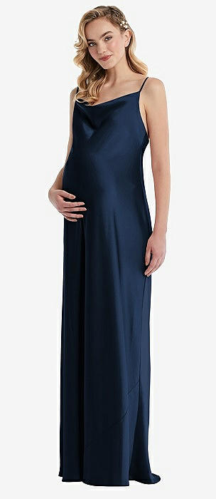 Cowl-Neck Tie-Strap Maternity Slip Dress in midnight navy