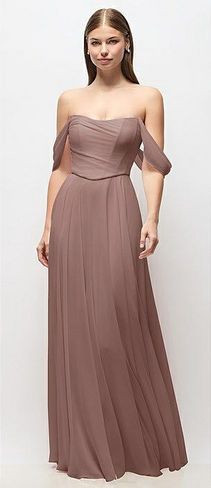 Off-the-Shoulder Basque Corset Chiffon Maxi Dress in sienna