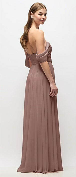 Chiffon Corset Maxi Dress with Removable Off-the-Shoulder Swags in sienna