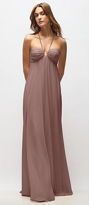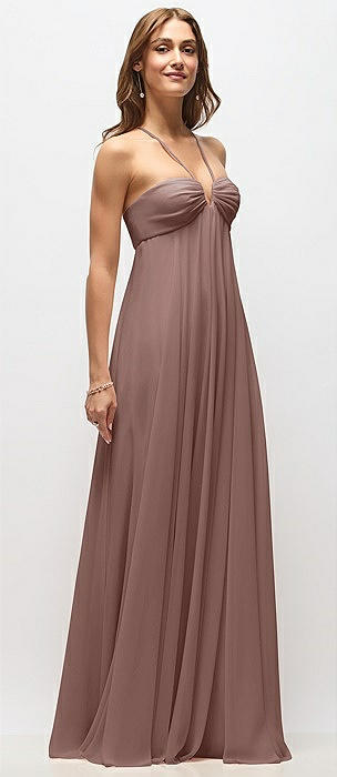Empire Waist Chiffon Halter Maxi Dress with Convertible Spaghetti Straps in sienna