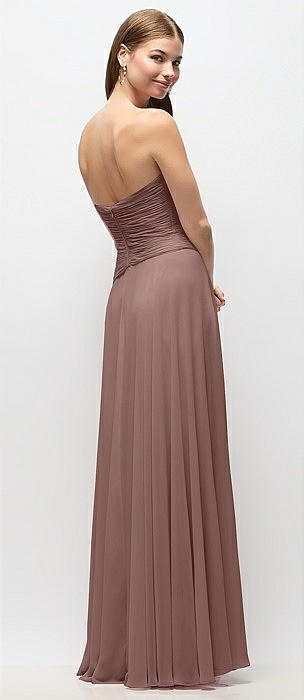 Strapless Pleated Surplice Chiffon Maxi Dress with A-Line Skirt in sienna